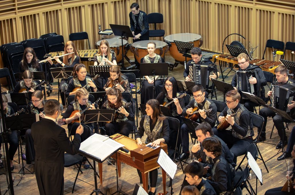 Концерт Юношеского оркестра русских народных инструментов (дирижер — заслуженный артист Российской Федерации, лауреат Всероссийского конкурса, лауреат Государственной премии Новосибирской области, преподаватель, художественный руководитель и главный дирижер Русского академического оркестра Новосибирской государственной филармонии Рустам Дильмухаметов).