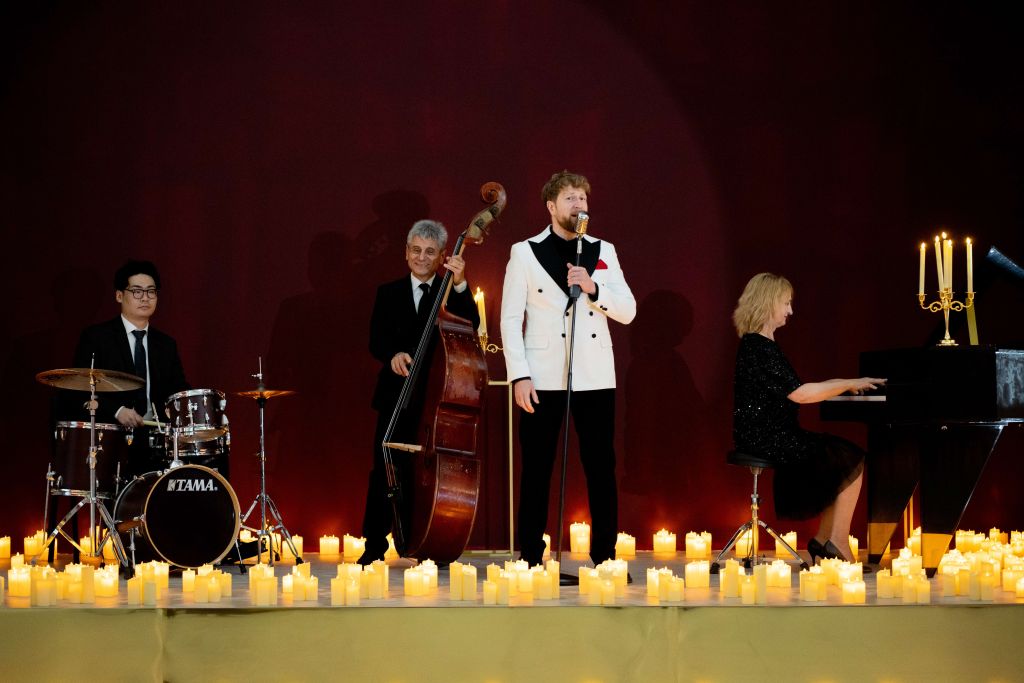 Высококлассный джаз-бэнд L. O. V. E. JAZZ исполнит для вас самые знаменитые хиты мэтра, такие как Fly Me to the Moon, My Way и многое другое! Душевный джаз и виртуозные импровизации, богатая лепнина и дворцовое убранство 19 века, сияние многочисленных свечей — что может быть романтичнее?!