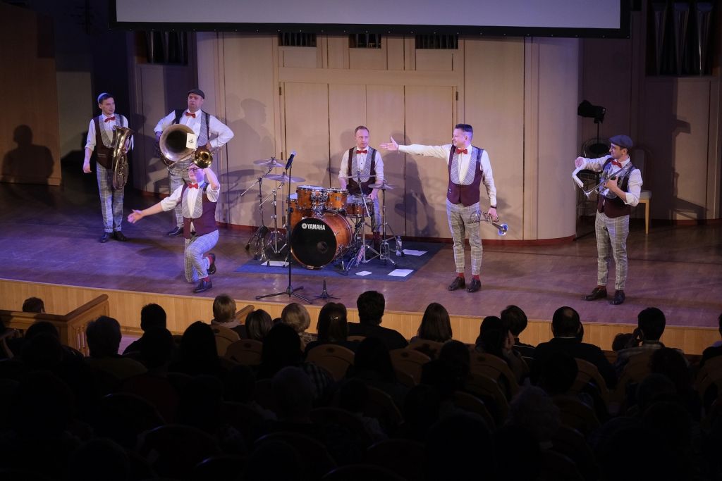 Исполнители: Российский эстрадно-джазовый ансамбль медных духовых инструментов Фортуна брасс В программе популярные произведения из репертуаров самых известных эстрадных джазовых оркестров Леонида Утёсова, Эдди Рознера, Олега Лундстрема; мелодии из отечественного и мирового кино (композиции из фильмов «Весёлые ребята», «Джентльмены удачи», «Операция Ы», «Ва Банк» и других); произведения Манчини, Рота, Миллера, Армстронга в авторских обработках для ансамбля медных духовых инструментов. С яркой, фееричной, зажигательной программой «Весёлые Ребята» выступит российский эстрадно-джазовый ансамбль «Фортуна Брасс» из Москвы. Броское название «Фортуна Брасс» расшифровывается как «удачная медь», ведь в составе группы — медные духовые инструменты, дополненные ударной секцией. Перед зрителями предстанет медное разнообразие тембровых оттенков: труба, флюгельгорн, эуфониум, тромбон, геликон-туба. Имея в своём репертуаре более 300 произведений, «Фортуна Брасс» с легкостью справляется с любыми музыкальными задачами на высочайшем профессиональном уровне. Коллектив ведёт большую работу по популяризации медной духовой музыки. C начала своего существования ансамбль дал более 2000 сольных концертов в России, странах Европы, СНГ и дальнего зарубежья. Выпущено два альбома: «Музыка советского кино» и «Мы из Брасса». На своих концертах музыканты «Фортуны Брасс» стараются доказать, что нет более величественного и естественного живого звучания, чем звуки медных труб. И им это удаётся! Про своё творчество они говорят так: «Мы играем и шутим на трубах, потому что смех и музыка — лучшие лекарства для души!»