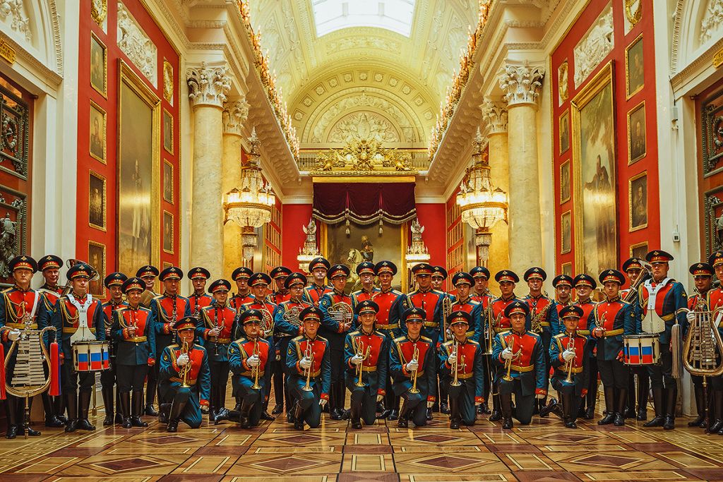 Вдохновляющая энергия духового оркестра, виртуозные солисты и блистательная музыка — Военный оркестр штаба Ленинградского военного округа представляет свой концертный репертуар.