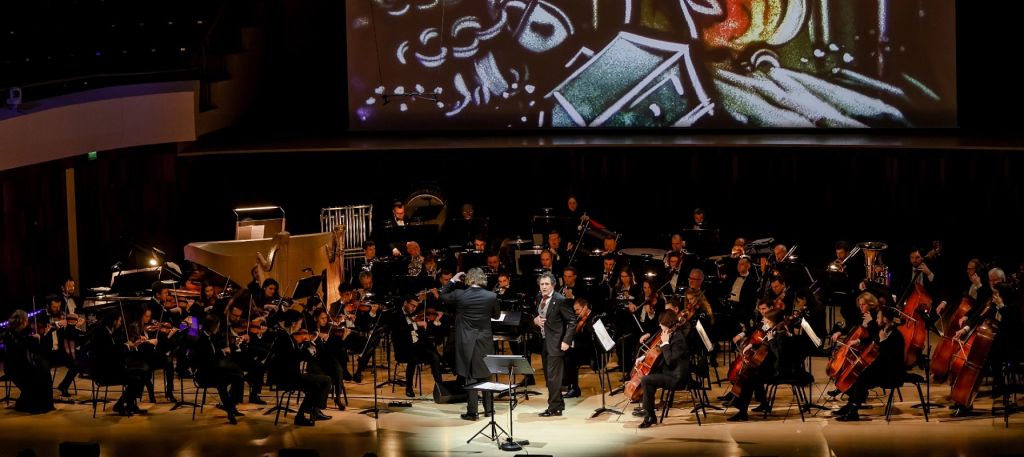 Исполнители: Евгений Князев — художественное слово; Государственный Кремлёвский оркестр; Дирижёр — Константин Чудовский; Лилия Чистина — песочная анимация. В программе: П. И. Чайковский — Трепак (русский танец) из балета «Щелкунчик»; П. И. Чайковский — Торжественная увертюра «1812 год», фрагменты; П. И. Чайковский — «Святки. Декабрь» из цикла «Времена года», фрагменты (оркестровка Гаука); П. И. Чайковский — «Вальс цветов» из балета «Щелкунчик»; Мусоргский — Гопак из оперы «Сорочинская ярмарка»; Сати — Две гимнопедии (оркестровка Дебюсси); Дворжак — Славянский танец, ор. 72,  2; Дворжак — Серенада для струнных, фрагменты; Франк — Симфоническая поэма «Проклятый охотник», фрагменты; Берлиоз — «Фантастическая симфония», фрагменты; Дебюсси — «Море», три симфонических эскиза для оркестра, фрагменты; Вебер — Вальс из оперы «Вольный стрелок»; Мендельсон — Симфония  3 «Шотландская», фрагмент; Мендельсон — Симфония  4 «Итальянская», фрагмент; Малер — Симфония  5, фрагменты; Сен-Санс — Сарабанда и ригодон для оркестра, ор. 93; Сибелиус — «Грустный вальс» из музыки к драме Ярнефельта «Смерть», фрагмент; Сибелиус — Симфоническая поэма «Туонельский лебедь», фрагмент; И. С. Бах — Kyrie Eleison из Мессы си-минор, фрагмент; И. С. Бах — Ария альта Erbarme dich из «Страстей по Матфею», фрагмент; И. С. Бах — Хоральная прелюдия Wachet auf, ruft uns die Stimme, фрагмент; И. С. Бах — Гуно — Ave Maria. В программе возможны изменения. Продолжительность: 2 отделения по 45 минут.