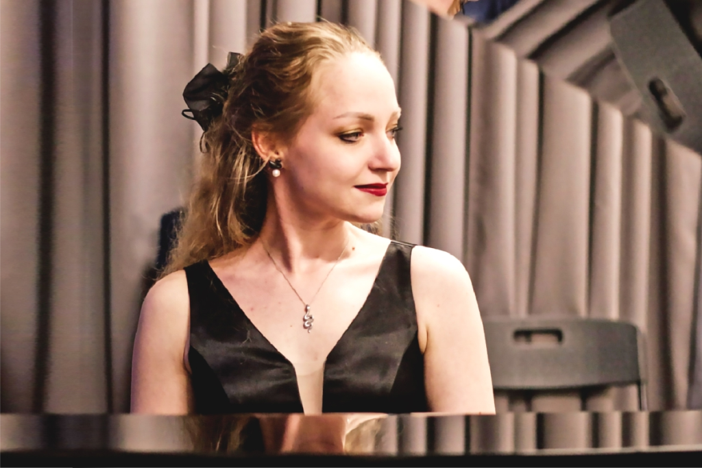На сцене Екатерина Андрианова (Шайназарова) — пианист, концертмейстер, преподаватель.