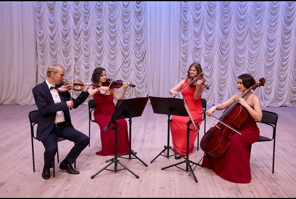 Квартет в составе: Владимир Добровольский, Анастасия Шмыга (скрипки), Карина Кузьмина (альт), Вера Вьюшина (виолончель);