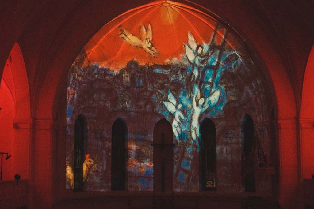 Сегодня в пространстве старинного собора парят ангелы, влюблённые и музыканты - излюбленные персонажи картин удивительного Марка Шагала - отражение многообразия жизни, фантазии, творчества и огромной любви, разлитой над миром. Прославленный мастер, обладатель множества премий и наград, до конца жизни оставался художником с уникальным, близким к фольклорному восприятием, темпераментом и образностью.