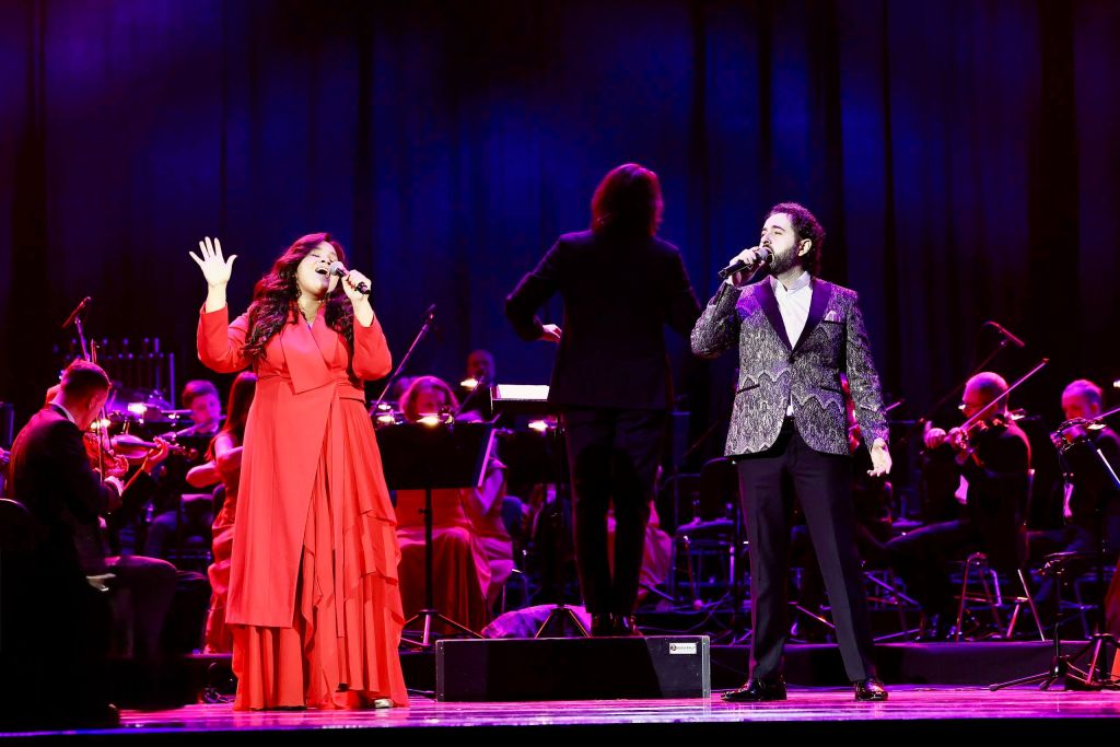 За дирижёрским пультом — председатель жюри, лучший аранжировщик и дирижёр Фестиваля Сан-Ремо — Роберто Молинелли.