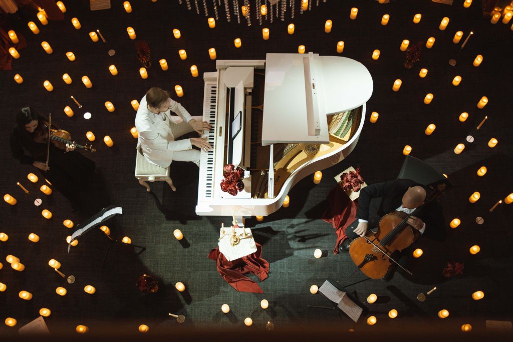 Этот вечер — настоящее эстетическое переживание: живая музыка, мягкое сияние свечей, панорамный вид на ночной город и атмосфера утончённой роскоши.