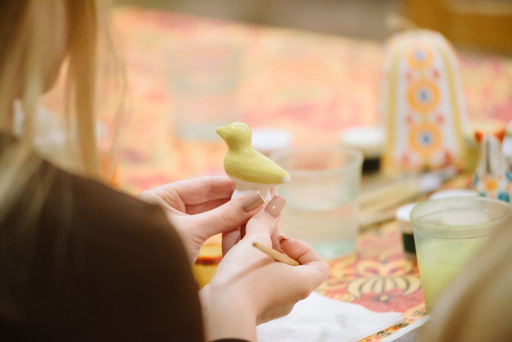 Мастер-класс позволит приобщиться к древней вятской традиции и увезти с собой настоящую дымковскую игрушку, которую Вы распишете сами. Вы узнаете историю дымковской игрушки, пройдете все этапы росписи — от побелки обожженной игрушки до нанесения узора. Готовая фигурка, расписанная под руководством мастерицы, украсит Ваш домой или станет отличным подарком для близких. Продолжительность: 45–60 минут