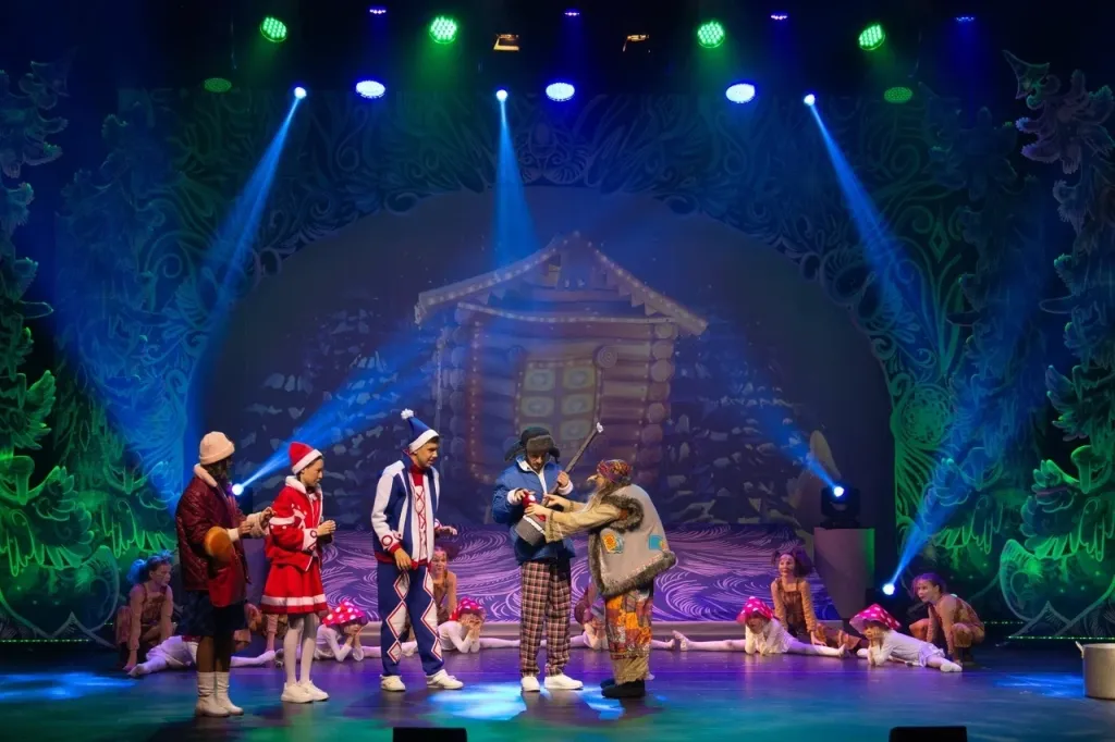 Действие сопровождается музыкальными, хореографическими и цирковыми композициями. Сюжетный ход сказки включает в себя интерактивы и игры, чтобы каждый зритель почувствовал себя причастным к новогоднему чуду. Яркие костюмы, волшебные декорации, массовые сцены, световое оформление– все это создаст сказочную атмосферу и сделает представление незабываемым.