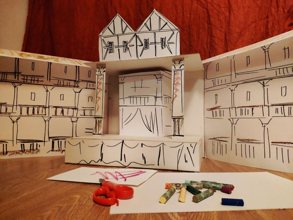 «Шекспир… Это не просто фамилия, это не просто «один из самых знаменитых» англичан, драматургов…. Говорим — «Шекспир» — и в голове возникает отдельный, свой мир… — Шекспировского театра, недаром и назывался он — «Глобус» — целый Земной шар в одном Человеке, вернее в его творчестве, в легендах, связанных с его жизнью, в знаменитых цитатах, которые продолжает повторять человечество уже шестую сотню лет. За час, безусловно, нельзя постичь эту Вселенную, но попробовать на 60 минут почувствовать себя Творцом, таким потенциальным великим драматургом — можно и нужно! Пусть пока из бумаги, но создать макет театра; пусть пока и костюм, вырезанный из белого крафта… но и этого уже достаточно, чтобы «волею жребия» получить роль в одной из самых знаменитых пьес Уильяма — «Сон в летнюю ночь» и оказаться на сцене пока что бумажного «Глобуса»!