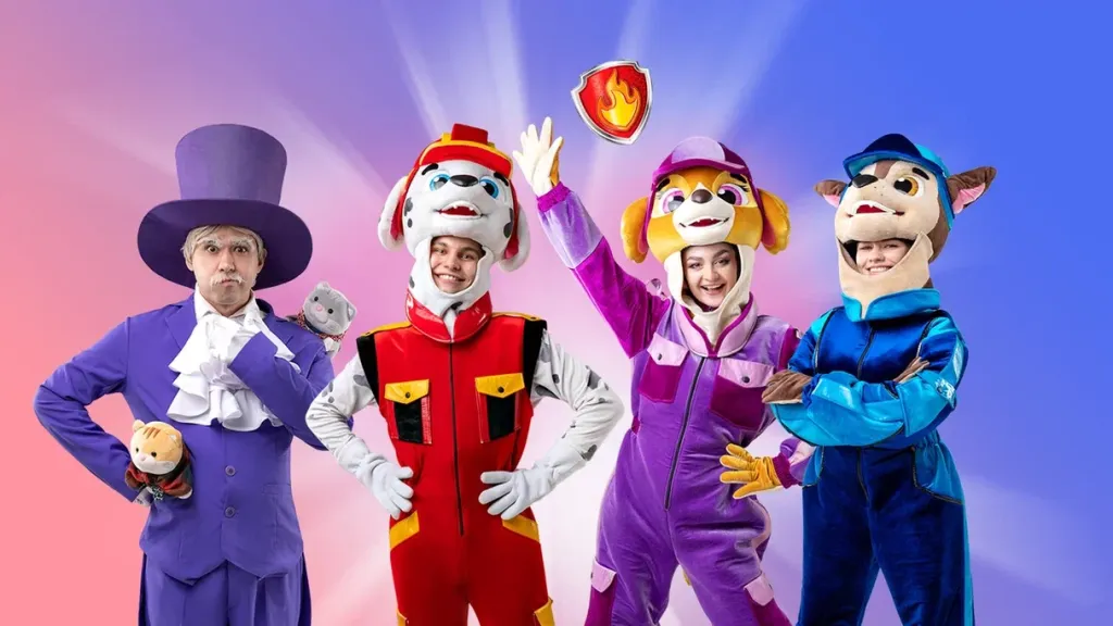 На шоу вас ждет: встреча и игры с любимыми Щенками, мини — шоу мыльных пузырей, поролоновое шоу, интерактивы с реквизитом, бумажное шоу, развивающие игры, танцевальные интерактивы, квест-задания.