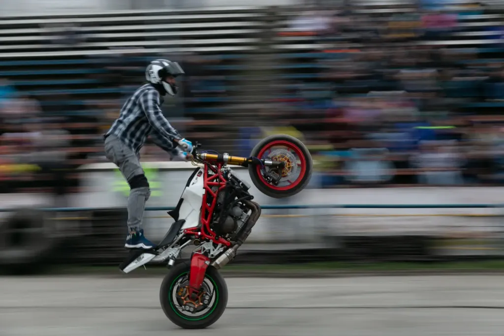 Полицейские развороты, езда на двух колёсах и технически сложные элементы в движении.