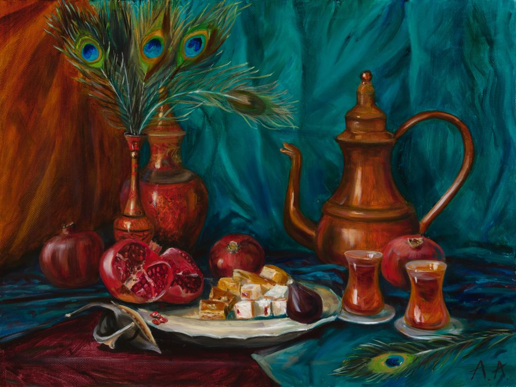 Работы, представленные в экспозиции, выполнены в технике масляной живописи. При общем материале каждая художница сохраняет самостоятельную интонацию и индивидуальный подход к композиции, цвету и образу. Все три художницы развивали свои художественные навыки под руководством педагога Оксаны Архиповой в студии «Пальмира арт».