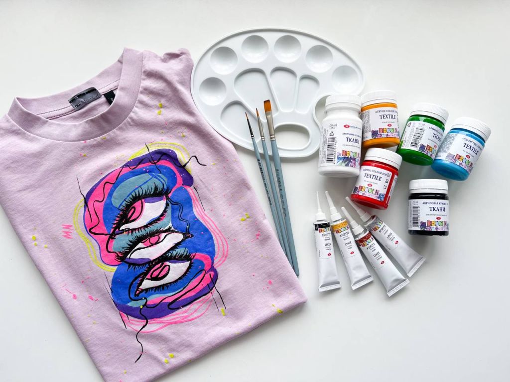 Художник предоставит участникам занятия оверсайз футболку, а им останется только добавить ей индивидуальности с помощью специальных красок, маркеров по текстилю и декоративных элементов.