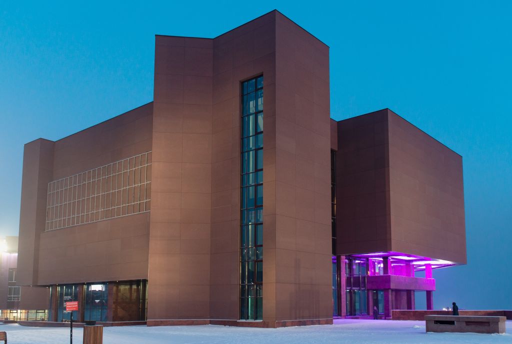 Архитектор – Арэг Демирханов. Внешне здание перекликается с природным заповедником «Столбы», его силуэт напоминает горы, рядом течет Енисей, внутри это лабиринт с множеством залов и уровней. Часть помещений сохранились как памятник поздней советской дизайнерской мысли. Современное название – «Площадь Мира» – отсылает к географическому расположению, адресу и объясняется миссией музея: стать пространством для изучения и презентаций актуального искусства.
