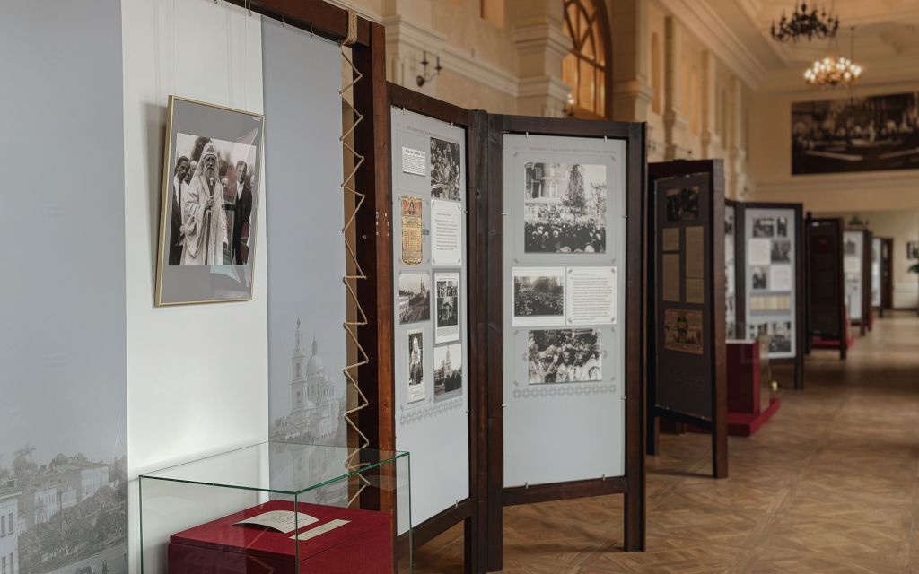 О жизни и подвиге святителя Тихона и о том трагическом переломном времени, на которое пришлось его служение, рассказывает выставка «Кто ны разлучит от любве Божия», представленная в Главном здании Православного Свято-Тихоновского гуманитарного университета — историческом здании Московского Епархиального дома.