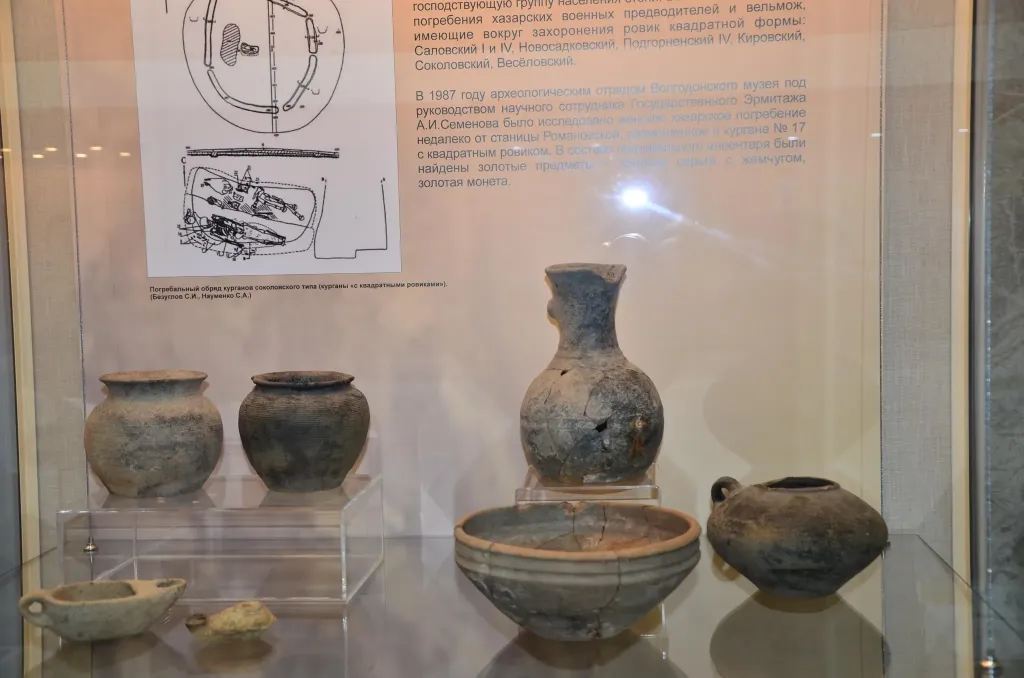 Среди экспонатов — подлинные предметы быта, боевое оружие и золотые украшения степных кочевников, реконструкция военно-исторического костюма и снаряжения скифского и сарматского воинов. Жемчужина коллекции — весьма редкое, хорошо сохранившееся деревянное изваяние XII–XIII вв. из половецкого святилища — могильника близ хутора Рябичев Волгодонского района Ростовской области. Всемирно известные исторические памятники федерального значения на территории Донского края — затопленная в 1950-х годах Цимлянским водохранилищем крепость Саркел — Белая Вежа, средневековые хазарские крепости Правобережное Цимлянское и Семикаракорское городища широко представлены в экспозиции. Впервые представлен материал подводных и надземных многолетних археологических исследований уникальных памятников археологии, осуществляемых командой Подводного археологического общества (г. Москва).