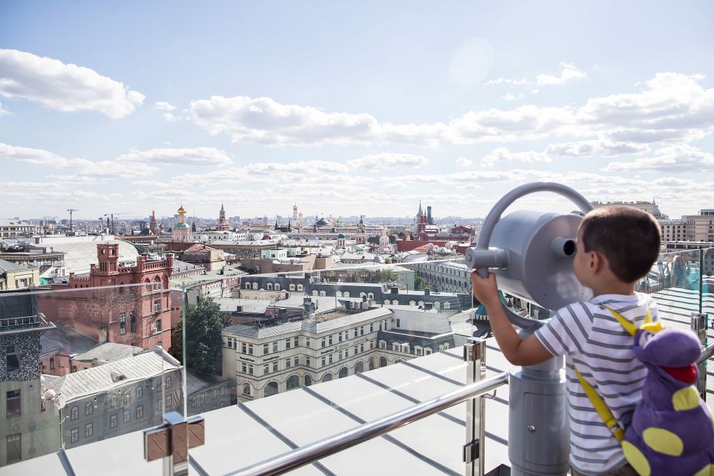 С крыши Главного Детского открывается уникальный вид на исторический центр: вы увидите Кремль, Политехнический музей, Лубянскую площадь и шпиль главного здания МГУ. Полюбоваться на город можно при помощи подзорных труб.