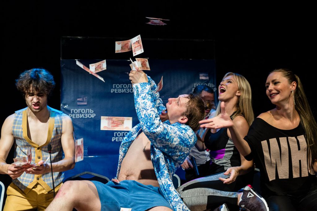 Действие пьесы Гоголя перенесено в настоящий день. Городничий и чиновники — областной административный начальник и его банда «братков», допустившие «перегибы на местах». Страх потерять хлебные места настолько высок, что они принимают развязного московского хипстера за того самого столичного проверяющего. Спектакль Андрея Сидельникова полон неожиданностей и удивит любого, кто хорошо помнит пьесу из школьной программы. Текст Гоголя здесь соединен с актерской импровизацией. Блестящий актерский ансамбль внимательно вчитывается в новостную повестку сегодняшнего дня и разыгрывает ее как серию блестящих комедийных реприз.
