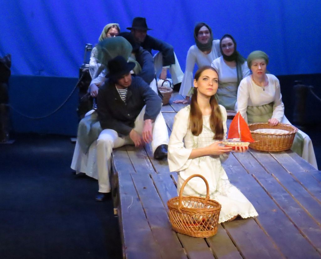 «…Я понял одну нехитрую истину. Она в том, чтобы творить чудеса своими руками. Если душа человека ждет чуда, — подари ему это чудо! И новая будет душа у него, и новая у тебя!..» А. Грин. «Алые паруса» в репертуаре театра уже более пятнадцати лет — история встречи прекрасной Ассоль и «её принца» полюбилась и юным зрителям, и признанным театралам, ведь она повествует о самом важном в жизни каждого человека — доброте, любви и милосердии. Из раза в раз герои спектакля внушают нам: боритесь за своё счастье, всегда идите только вперёд, вдохновляйте друг друга на настоящие подвиги и главное — верьте в свою мечту, верьте — и вы увидите на горизонте сказочный корабль с алыми парусами. С антрактом