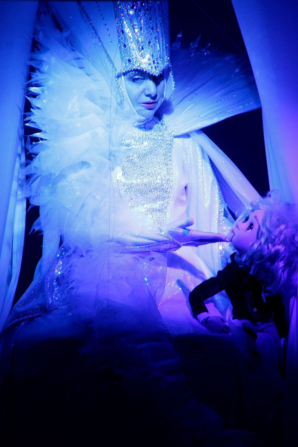 «В большом городе, где столько домов и людей, что не всем и каждому удается отгородить себе хоть маленькое местечко для садика, жили двое бедных детей — Кай и Герда. Они не были в родстве, но любили друг друга, как брат и сестра». Однажды, осколки зеркала троллей, попавшие Каю в глаза и сердце, сделали его холодным и бесчувственным. Ослепленный величественной красотой Снежной Королевы, он отправился с ней во дворец, позабыв маленькую Герду. Куклы и артисты театра расскажут вдохновляющую историю о любви, чистой и искренней, ради которой Герда обошла весь свет в поисках своего названного братца.