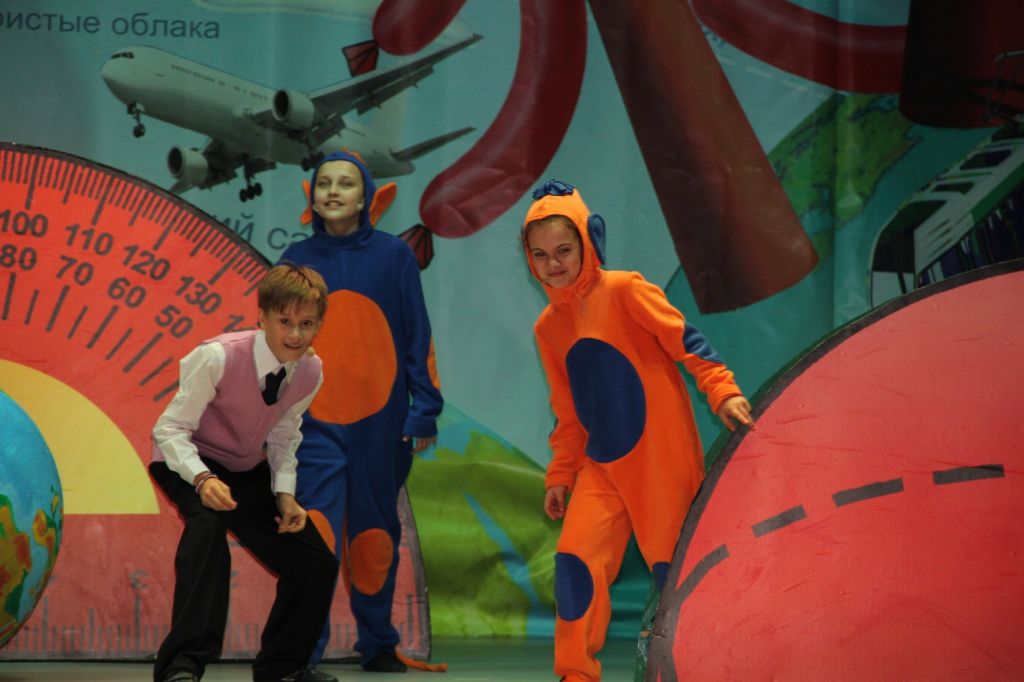 На сцене разговаривают Учебники, двигаются гигантские Транспортиры, поют возмущенные Коровы и очень умные Вопросительные знаки. А какой обаятельный и привлекательный Кол, вечно спорящий с умницей Пятерочкой! Ну и, конечно, главный путешественник — Витя Перестукин, сумевший на последней секунде поставить правильно запятую.