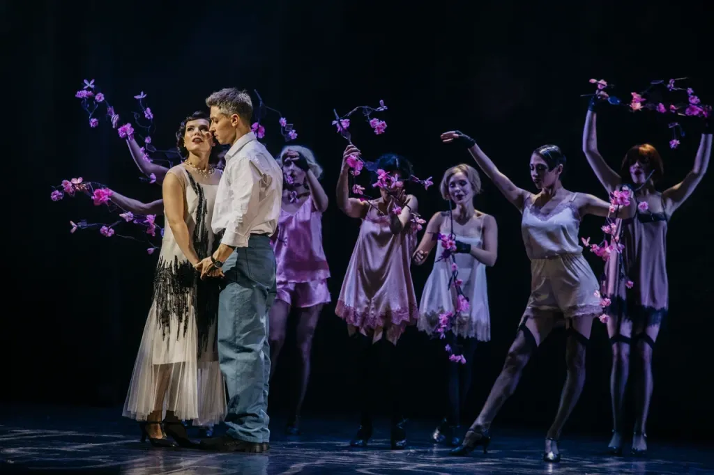 Сценографическое решение спектакля художника Елисея Шепелева основано на противопоставлении: на проекции представлены жесткие брутальные фрагменты города — кирпичная стена, заводские трубы, создаётся среда, равнодушная к переживаниям героев, в которой нет места любви. Но с возникновением Пат появляется ветка весеннего дерева, усыпанная цветами — она будто из другого мира. Любовь наполняет своей силой и чистотой всё пространство.