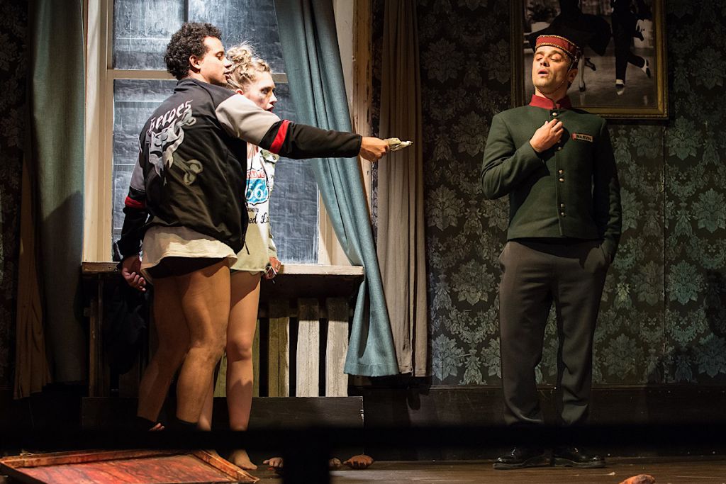 Но комическая интрига усложняется еще и тем, что помощниками и противниками Безрукого в его бесконечном американском путешествии на короткий отрезок времени становятся афроамериканец, приторговывающий марихуаной, его белая подружка — безбашенная блондинка — и шизофренический портье.