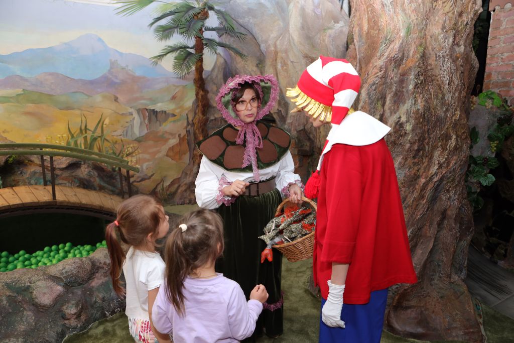 Преодолев пещеру и спустившись с горы, вы окажетесь в стране Буратинии. Ребята побывают в домике Мальвины, найдут золотой ключ в пруду черепахи Тортилы. Ну а главная тайна сказки — в каморке папы Карло! За холстом с нарисованным очагом есть потайная дверца, которую нужно открыть волшебным ключом. Помните, куда она ведет?