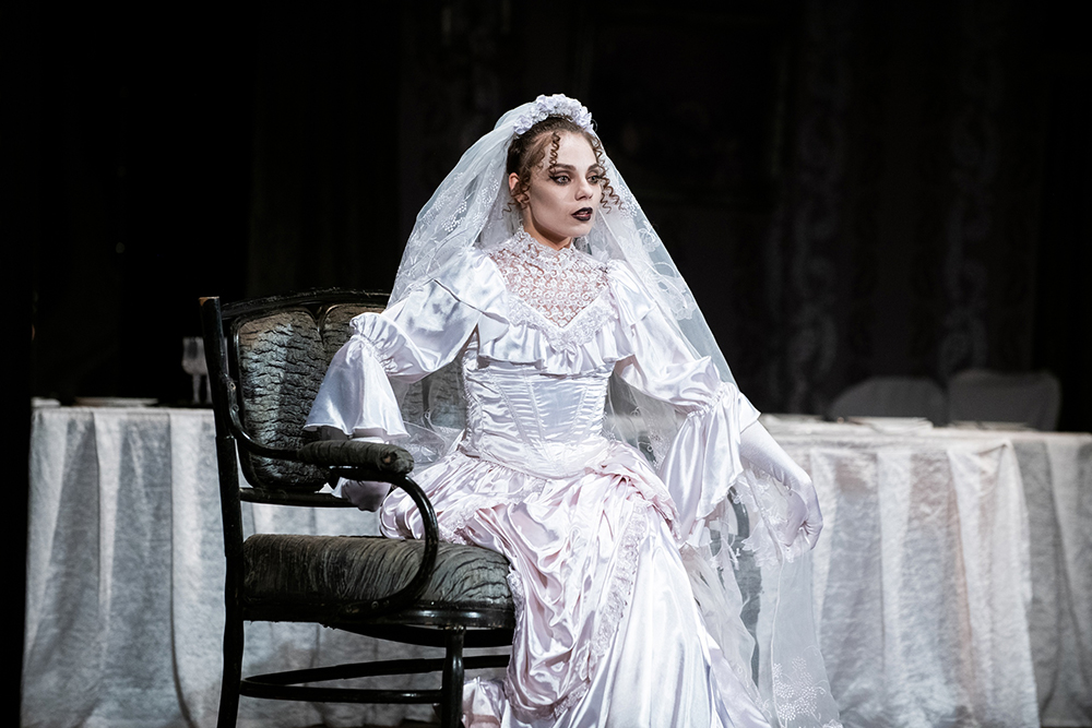 Здесь нет ни главных ни второстепенных героев – у каждого персонажа комедии яркий, неповторимый характер и колоритный образ. Весь спектакль очень динамичен: безудержное веселье, танцы, острый юмор, колкие диалоги – всё это приковывает внимание зрителя от начала и до конца спектакля. «Свадьба с генералом» – спектакль о парадоксальном и трагикомичном мире, где любовь, радость, красота обратились в скверную пародию на самих себя.