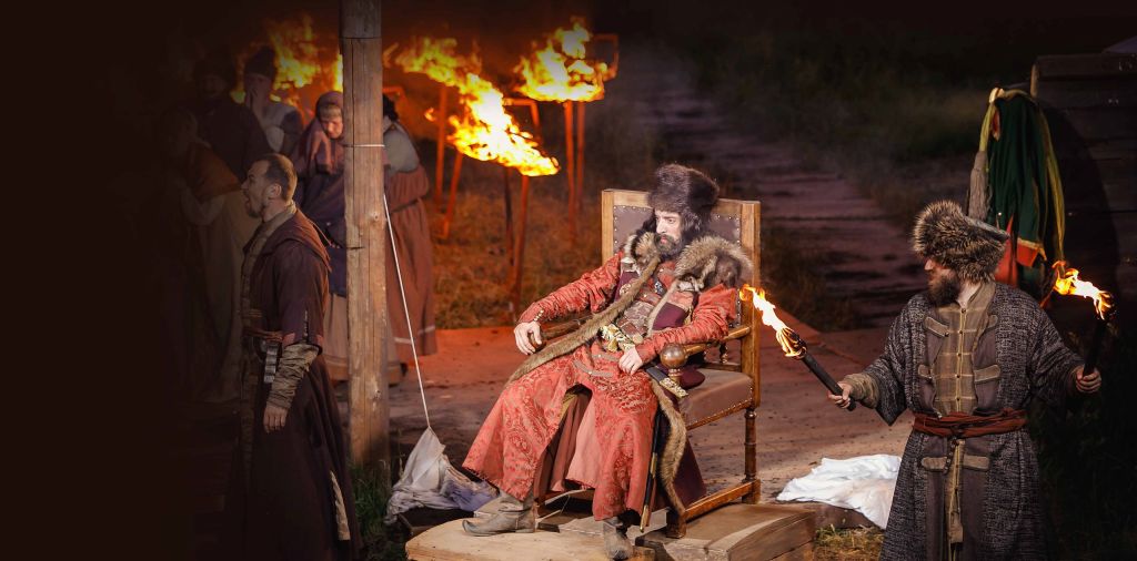 Спектакль, как и сама повесть, не столько рассказ об исторической личности Пугачева. Как и в жизни, здесь всё — страшное и нежное, подлое и чистое переплетены в каждом дне. Это трагическая, но невероятно поэтическая история любви юных Петра Гринева и Маши Мироновой. Любовь во все времена тревожна, а уж когда молодые люди, только открывающие для себя мир, оказываются в эпицентре кровавой борьбы, неуправляемой стихии мятежа и войны — во сто крат. И оказывается, что любовь всё выдерживает и взлетает над предательством и над смертью.