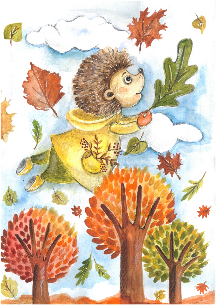 Ой, что же это произошло в лесу?... Все торопятся, бегут, улетают, запасают, засыпают... Некогда лесным жителям в прятки играть, осень на хвостики наступает. Ёжику тоже готовиться пора, обустраивать тёплую норку, а он всё бегает... Никак наиграться не может.
