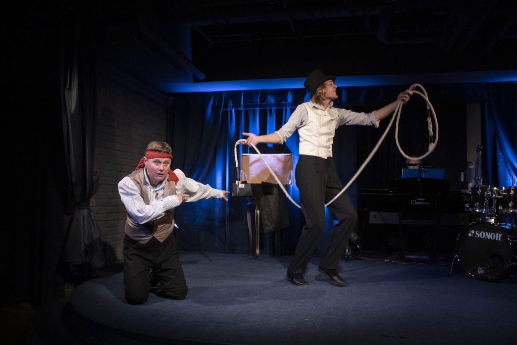 Александр Сергеевич Пушкин, «Сказка о попе и о работнике его Балде». Сказка в сопровождении оркестра. Отвечать на вопросы сказочников и участвовать в сюжете не только можно, но и нужно! Здесь нет всей строгости правил взрослого театра, где зрители чинно сидят на местах и соблюдают полную тишину. Зато есть возможность послушать стихи, поучаствовать во всех перипетиях сюжета и в весёлой игре, которую ведут актёры академического театра. Это музыкальное интерактивное представление, все роли — и попа, и попадью, и работника, и чертей — играют два артиста: Олег Лопухов и Николай Романовский. Зрителей ожидает яркое и динамичное зрелище с мгновенной переменой образов.