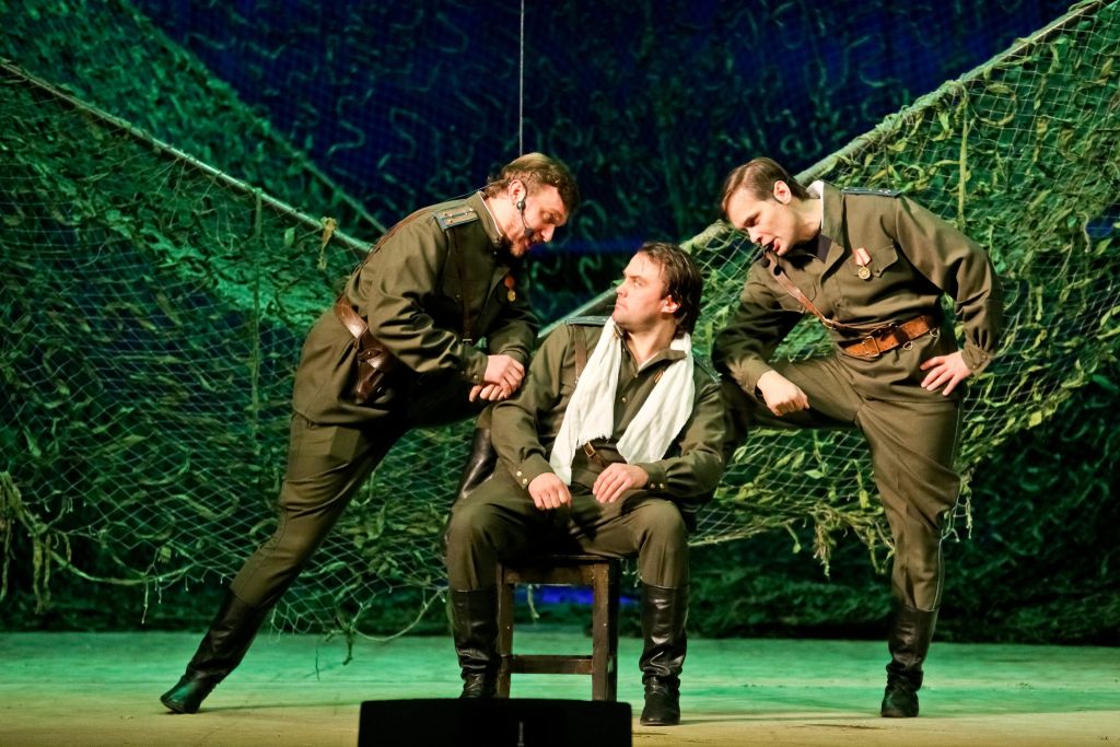 Спектакль разворачивается на фоне военных действий, однако, по словам режиссера, «спектакли только про войну никто не ставит». Под маскировочной сеткой, которая превращается то в палатку, то в ангар для самолета У-2, летчики и летчицы встречаются, влюбляются...