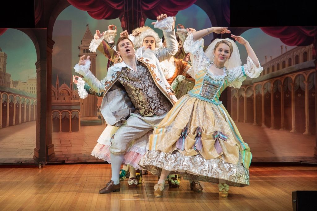 Мы предлагаем современное веселое и романтическое прочтение нестареющей классики XVIII века, когда у актеров есть возможность импровизировать и давать свои трактовки. Ведь во все времена в каждом из нас неистребима тяга к искрометной комедии положений, что помогает легче жить в мире противоречий и неустроенных судеб, в мире, где от смешного до трогательного — один лишь шаг. Спектакль отчасти сродни русскому водевилю, столь любимому когда-то публикой и немного забытому в наши дни. Главный герой добродушный и смекалистый Труффальдино в блистательном исполнении Вадима Колганова находит выход из любых самых невероятных ситуаций с помощью живого ума, юмора и самоиронии.