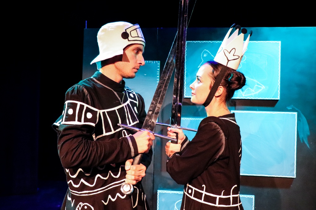 Это по-настоящему актёрский спектакль, где много юмора и общения со зрительным залом, где декорации и реквизит минимальны, но необычайно выразительны, и где буквально всё - персонажи, пейзажи, предметы и даже мысли героев - возникают меловыми линиями на грифельных досках.