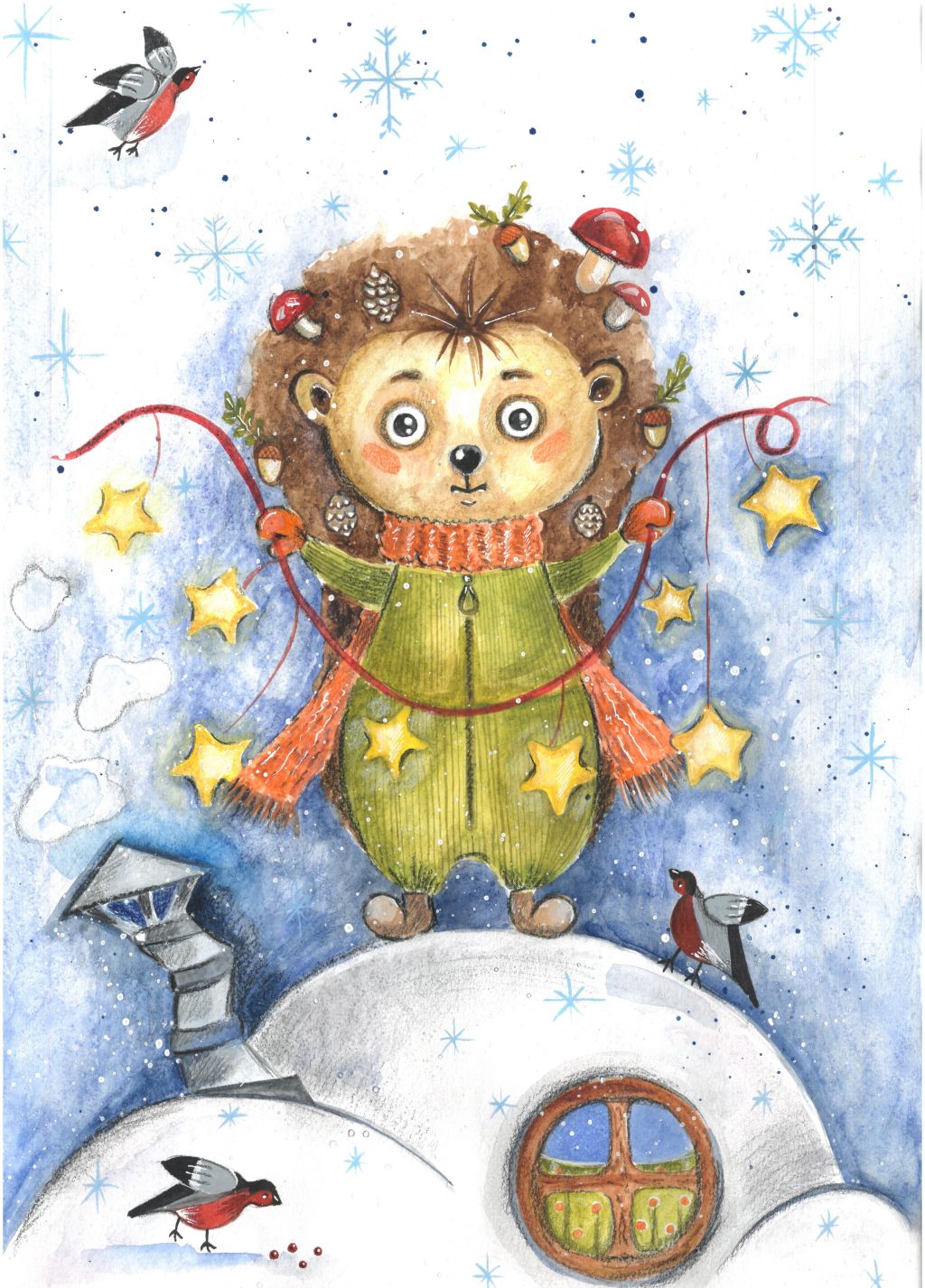 Белки полянку шишками украшают, зайцы зайковиков лепят, даже рыбки подо льдом танец праздничный разучивают, а ёжики... Ёжики спят. Но иногда маленькие ёжики просыпаются посреди зимы и очень сильно удивляются... Почему так холодно, что это такое белое и колючее, почему друзья не спят и все суетятся?