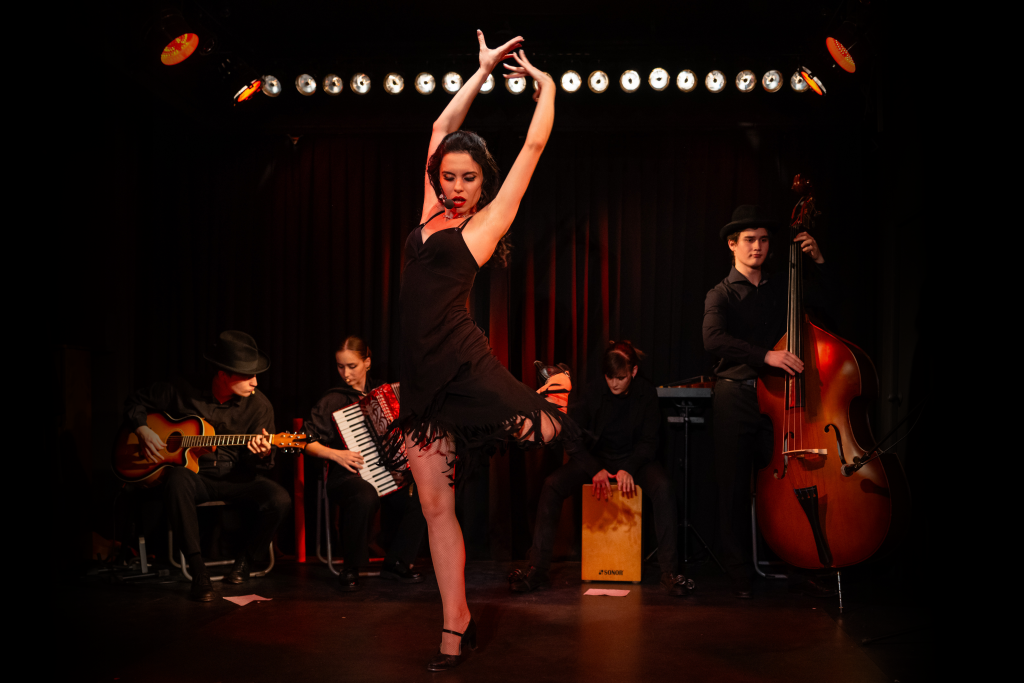 Это камерная постановка, где драматический монолог переплетается с живой музыкой: аккордеон, перкуссия, гитара, скрипка и танцевальные зарисовки. Особую роль здесь играет степ — ритм ног, который становится частью повествования и подчёркивает эмоциональные акценты истории.