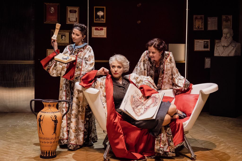 Режиссер Алексей Золотовицкий: «Мы постарались максимально бережно отнестись к роману и осознанно не переделывать его в пьесу. Важно было сохранить мир авторской прозы, с его интонациями и красотой мысли. Поэтому так легко актрисы выходят из образа, поэтому так много чисто театральной условности».