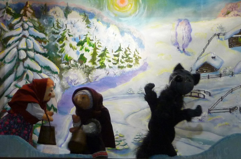 Этот озорной и поучительный спектакль поставлен по двум русским народным сказкам: «Волк-простофиля» и «Лисичка-сестричка и волк». Вроде бы совсем разные сказки, но и в одной, и в другой глупый и самодовольный волк попадает впросак по милости слабых, но хитроумных зверей. Действие разворачивается на фоне чудесных зимних пейзажей: таинственный зимний лес, уютная заснеженная деревня, речка с той самой прорубью, в которой наш непутёвый герой ловит рыбку «большую и маленькую»...