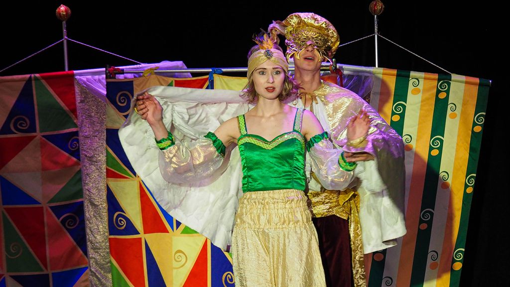 Спектакль вдохновлен произведениями великого итальянского драматурга Карло Гоцци и открывает зрителям удивительный мир комедии масок — итальянского народного театра, где яркие персонажи и интригующие сюжеты оживают на сцене. Зрители встретятся с героями классической Комедии дель арте: находчивым Труффальдино, очаровательной Смеральдиной, мечтательным Бригеллой и мудрым доктором Панталоне. Положительные и отрицательные герои расскажут удивительную, полную приключений историю любви смелого принца Рахматура к очаровательной принцессе Миране.