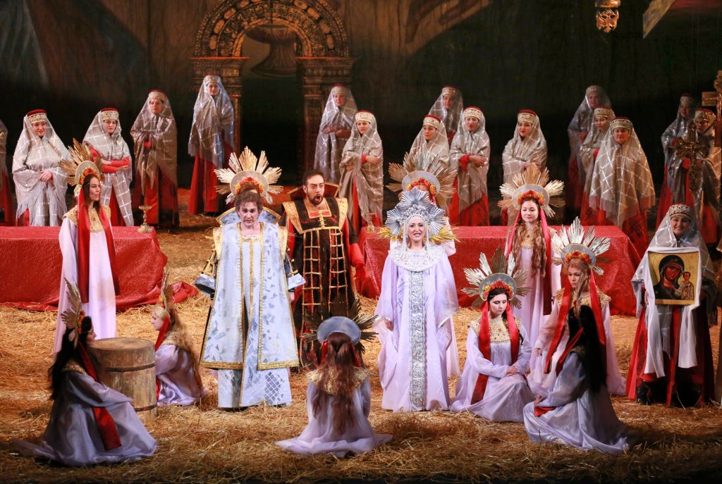 Неожиданно в сопровождении бояр появляется Малюта Скуратов и объявляет волю Ивана Грозного: Марфа выбрана сочетаться браком с государем и стать царицей.