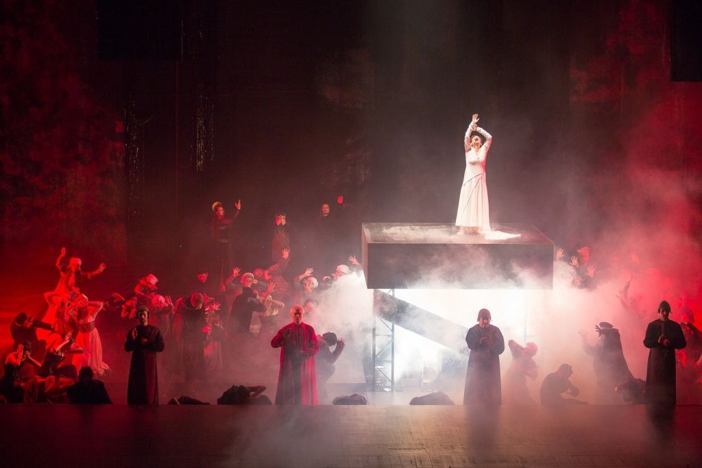 Одно из самых монументальных творений Петра Чайковского – опера «Орлеанская дева» – это яркое художественное воплощение эпизода захватывающей истории Франции начала XV века. На фоне окончания Столетней войны, времени «охоты на ведьм», религиозного фанатизма и сожжения на «святых» инквизиторских кострах развернулась легендарная жизнь юной Иоанны д’Арк, сумевшей воодушевить и возглавить отчаявшуюся французскую армию, обратить в бегство гарнизоны, казалось бы, неприступных крепостей. Но чувство долга перед Родиной слабнет под натиском вспыхнувшей любви к рыцарю-изменнику. Нарушен священный обет – Иоанна пощадила врага. И лишь смерть позволит избавиться от непреодолимого противоречия: разверзнется небо, и хор ангелов возвестит о прощении. Премьера постановки состоялась в 2015 году. Режиссёром спектакля стал один из лучших молодых российских постановщиков, обладатель Премии «Золотая Маска», ныне главный режиссёр Башкирского театра оперы и балета Филипп Разенков.