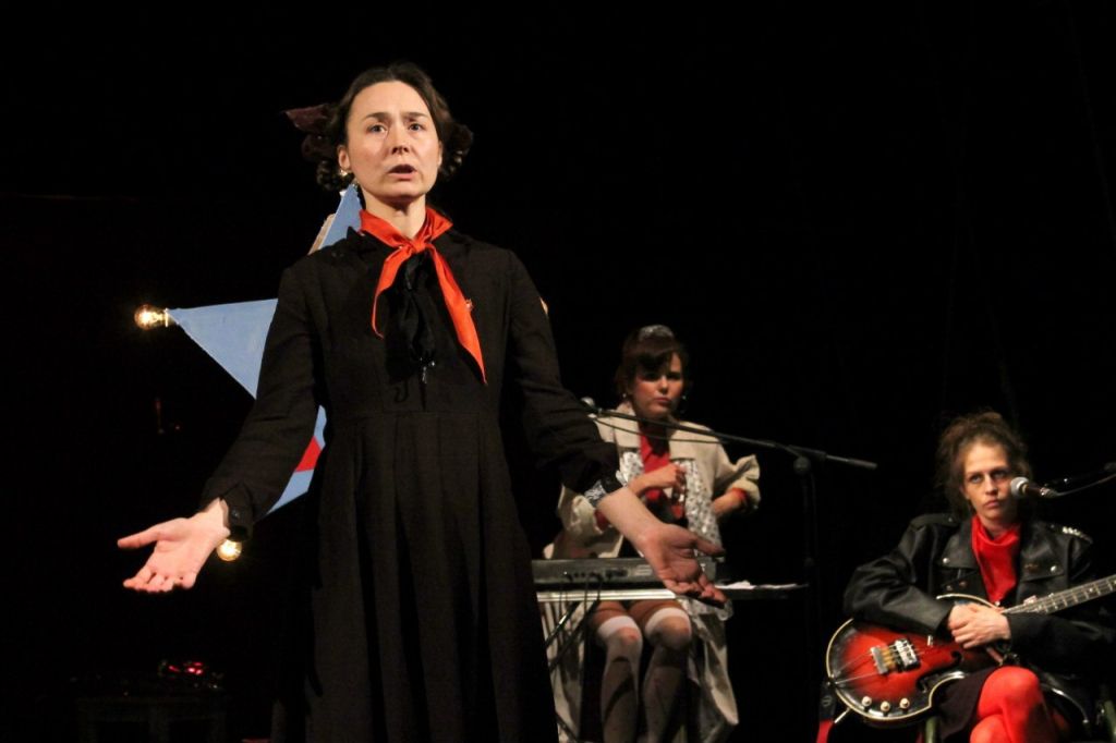 Вот и зрители спектакля попадают на репетицию такого школьного оркестрика, участники которого словно собраны из разных времен — от пионерки-отличницы Риты в ненавистном коричневом платье с белым фартуком до вполне современного Вовы в мешковатых штанах и толстовке с капюшоном. Да и репертуар у них соответствующий: от Высоцкого до Земфиры. Незатейливый разговор участников, в котором юмор порой граничит с абсурдом, а истории из жизни перемешиваются с живым исполнением песен, неожиданно обрастает серьезными проблемами и разгорается конфликт. Откровения представителей разных поколений неожиданно и парадоксально выстраиваются в живописный и нелицеприятный портрет нашего времени.
