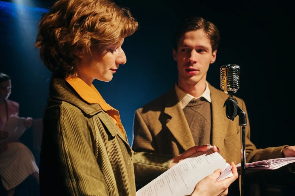 В общем-то, именно об этом обмане — наш спектакль. Несколько актёров собрались в студии звукозаписи. Вроде бы они играют — своих героев, предлагаемые обстоятельства, контекст, — а вроде бы и нет. Вы, кстати, скорее всего, не знаете этих героев: это действующие лица очень ранней пьесы Генрика Ибсена «Столпы общества». Но спектакль не совсем по ней: режиссёр Соня Дымшиц, по сути, написала эту пьесу заново, отсюда и новое название — «Господин советник».