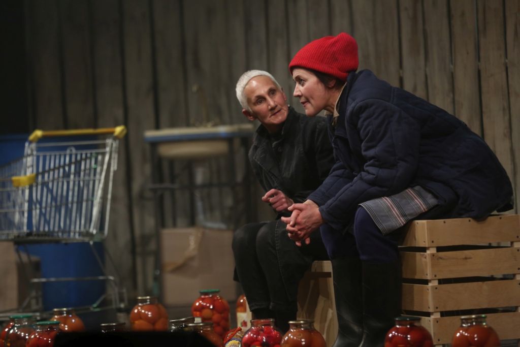 Трудно вообразить более несхожих женщин, чем героини, и трудно представить более несхожих исполнительниц. Диана — Роза Хайруллина с ее бесстрастием и абсолютно инопланетной внешностью, бесплотностью, угловатой пластикой, отсутствующим взглядом — кажется экзотическим растением на фоне такой реальной, шумной и простой Нины Юлии Чебаковой. Стилистика актерской игры балансирует на стыке абсурда и бытовой конкретики. И это основа конфликта пьесы, взаимоотношений между героинями и трагикомических смыслов рассказанной истории.