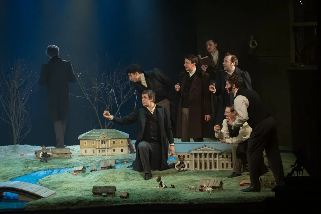 В спектакле найдется место и биографическим деталям, и эмоциональным привязанностям Пушкина. Например, одним из сценографических героев станет «Нащокинский домик» — кукольный домик, за созданием которого в доме Павла Нащокина поэт следил несколько лет. Только в спектакле художественным содержанием станет не историческая копия дома в Воротниковском переулке, а микромир Евгения Онегина, а вместе с ним — пространство для саморефлексии, конфликт свободы и несвободы, игра случая и рока...