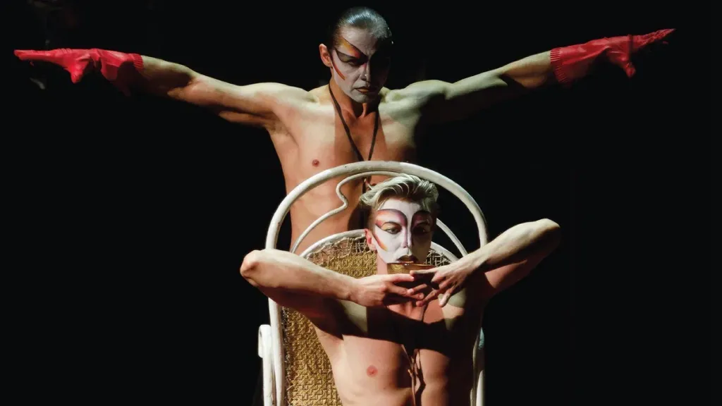 Хорошо сложенные, мускулистые актёры театра представляют эту психологическую драму хореографическими, пластическими и вокальными средствами. А сложный грим напоминает японский театр кабуки (синтез пения, музыки, танца и драмы, где грим несёт символическую нагрузку).