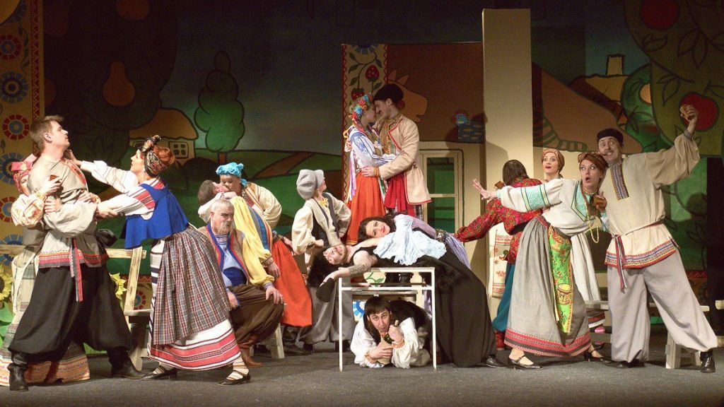 … Богатый селянин Солопий Черевик едет на знаменитую Сорочинскую ярмарку продавать пшеницу. Вместе с ним отправилась и его семья: сварливая жена Хивря и красавица дочка Парася.