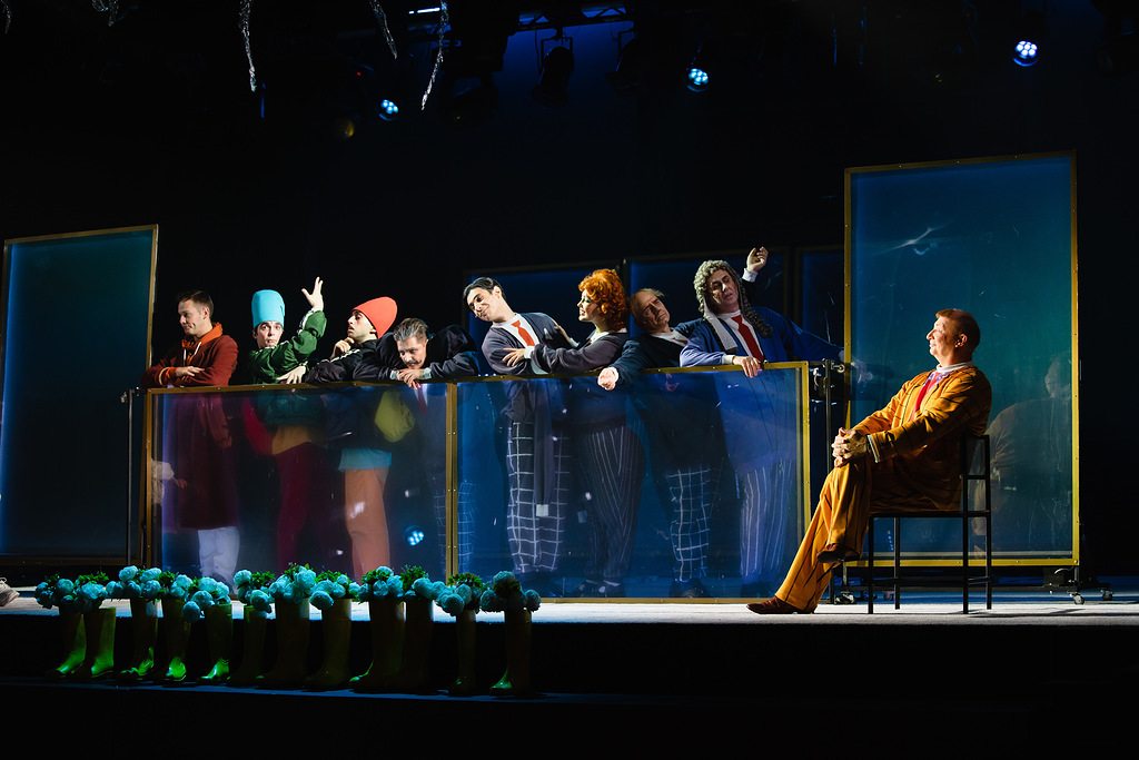 В произведении классического «Ревизора» мы знаем ответ, но «Ревизор» Театра Эстрады имени Аркадия Райкина объединит в себе два произведения писателя — самого «Ревизора» и «Театральный разъезд после представления новой комедии». И если первая пьеса хорошо знакома широкой публике, то вторая не у каждого на слуху. В сценической интерпретации режиссёра Стаса Парфёнова именно «Театральный разъезд…» даст основу для столкновения и выведет на сцену поистине положительного персонажа, имя которому Смех.