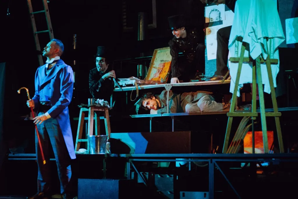 Театр завершает свою гоголевскую трилогию спектаклем «Портрет» — историей талантливого художника Чарткова, волею случая (случая ли?) приобретающего в лавке портрет старика-ростовщика. Портрет написан с необычайным мастерством — кажется, старик смотрит живым, пронзительным взглядом и видит Чарткова насквозь: видит, что тот беден и находится на грани отчаяния от существования в нищете, видит невероятный талант Чарткова и красоту его работ, видит даже его надежды и мечты... Или то уже не старик, а сам дьявол, увидевший достойную добычу, смотрит с картины и предлагает Чарткову помощь?